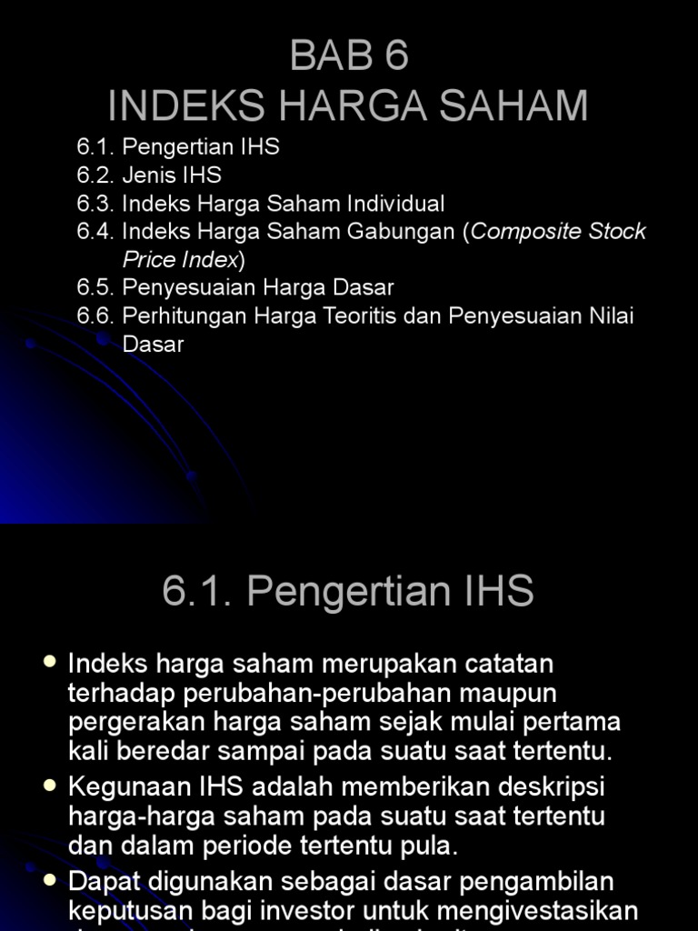 Metode Perhitungan: Ada beberapa metode yang digunakan untuk menghitung nilai indeks saham. Salah satu metode yang umum adalah metode kapitalisasi pasar, di mana perubahan harga saham dikalikan dengan jumlah saham yang beredar untuk setiap perusahaan dalam indeks.
