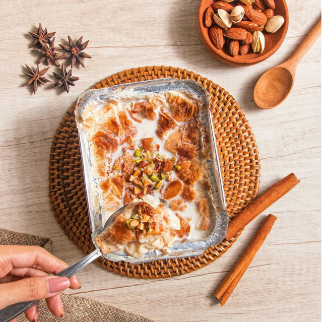 5.Umm Ali: Umm Ali adalah hidangan penutup yang terbuat dari lapisan puff pastry yang direndam dalam susu, krim, dan gula, kemudian ditambahkan dengan kacang almond dan kismis. Ini adalah hidangan penutup yang lezat dan populer di Mesir.